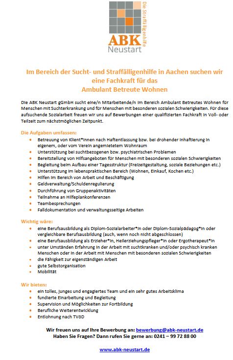 Wir interessieren uns immer für Bewerbungen, die signalisieren, dass das Thema Straffälligenhilfe und die damit verbundene Tätigkeit von persönlichem Interesse ist.